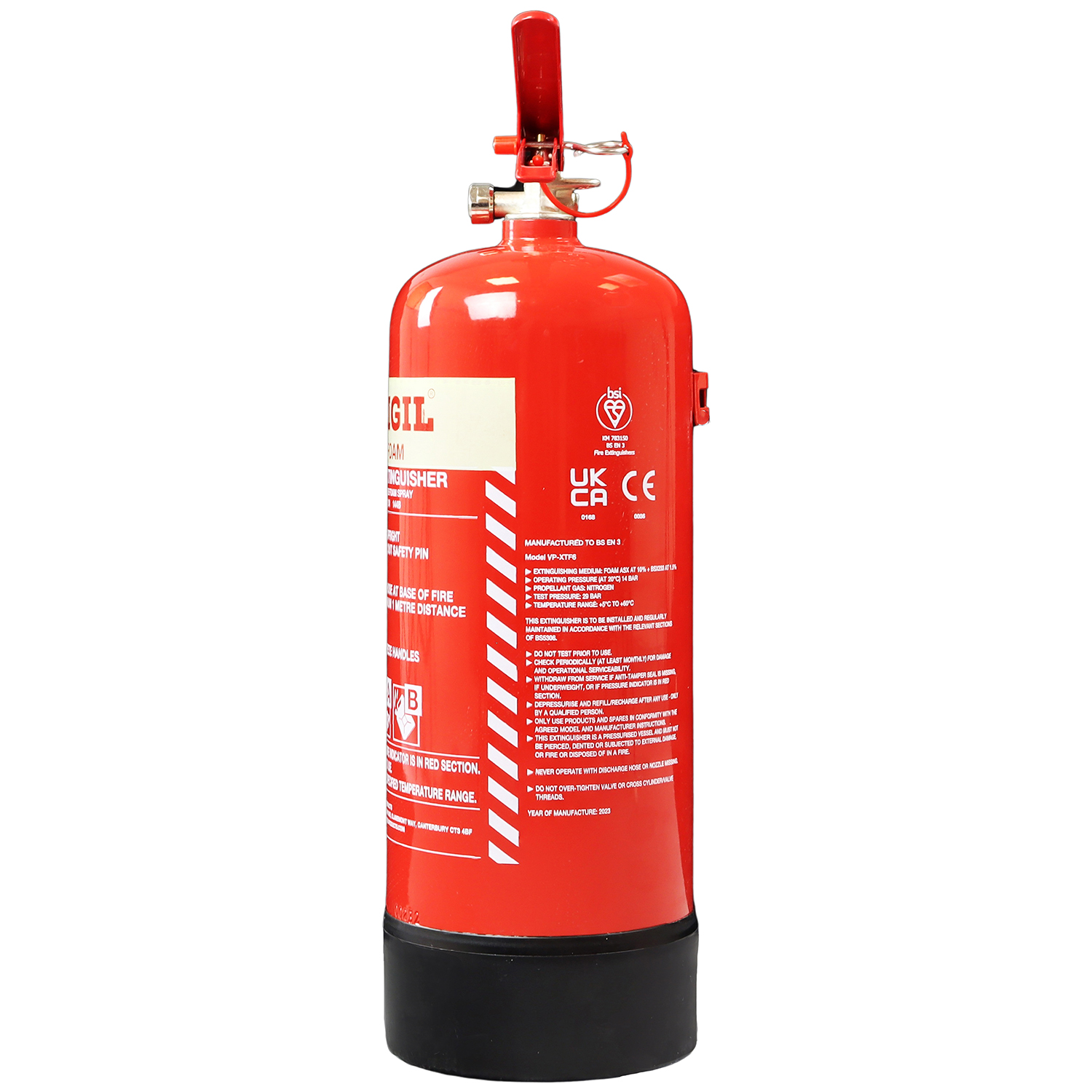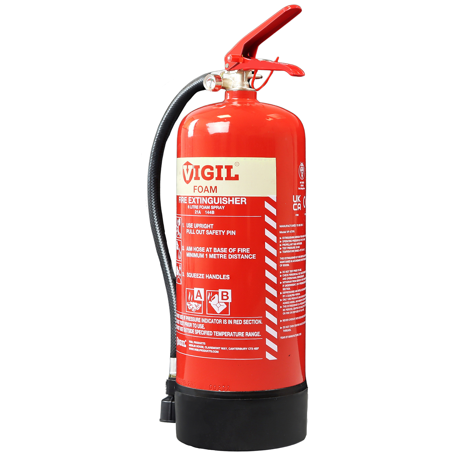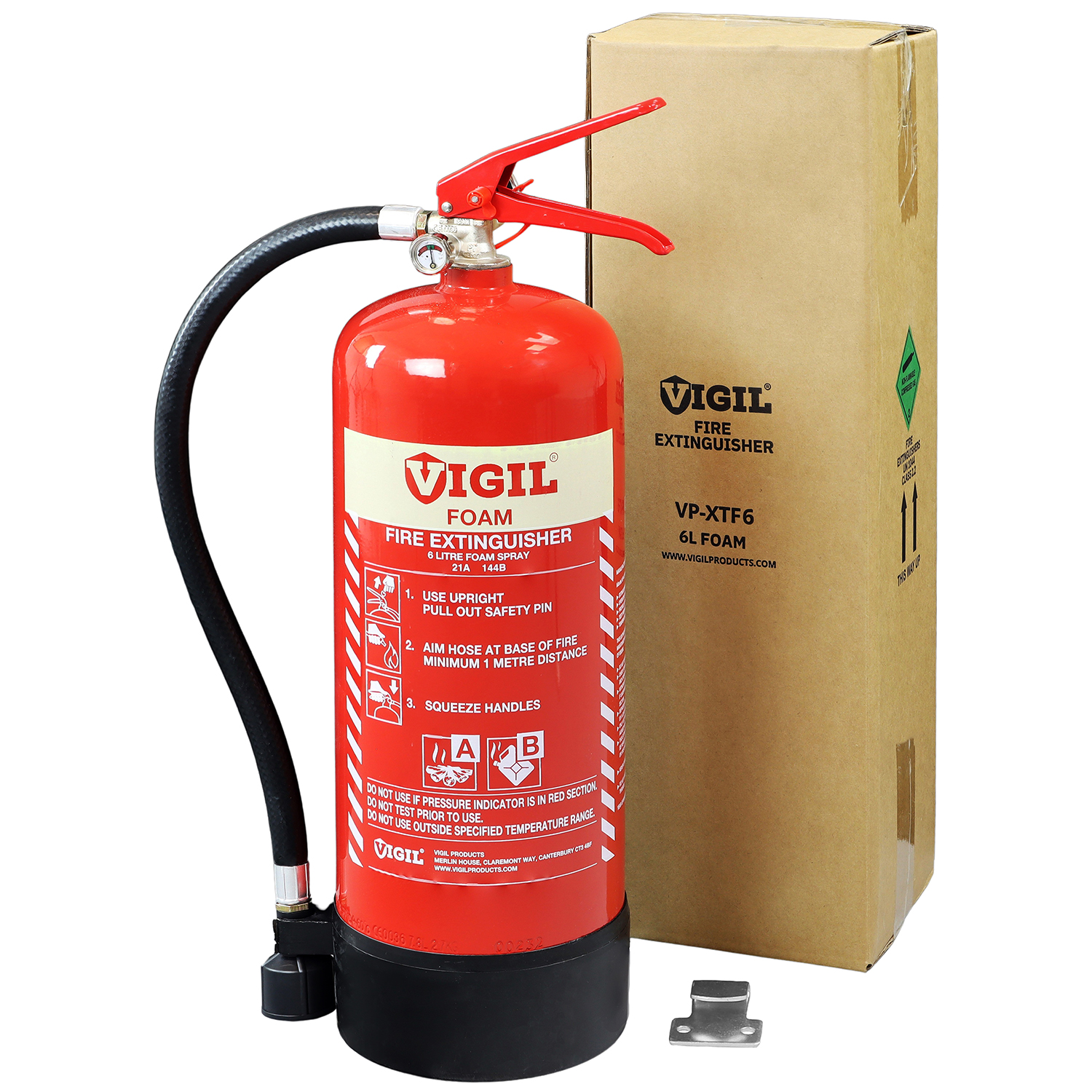 The reason that the 6 litre foam fire extinguisher is so popular (apart from the price, of course) is that it has a special spray nozzle that, if accidentally sprayed on live electrics, will not conduct electricity. As well as that, it has a 21A 144B fire rating with BS EN3 Kitemarked and CE Marked with all of the approvals that you will need to satisfy your insurance and Fire Regulation requirements, and it comes complete with a wall hanging bracket and a plastic base if you decide to use an extinguisher stand.