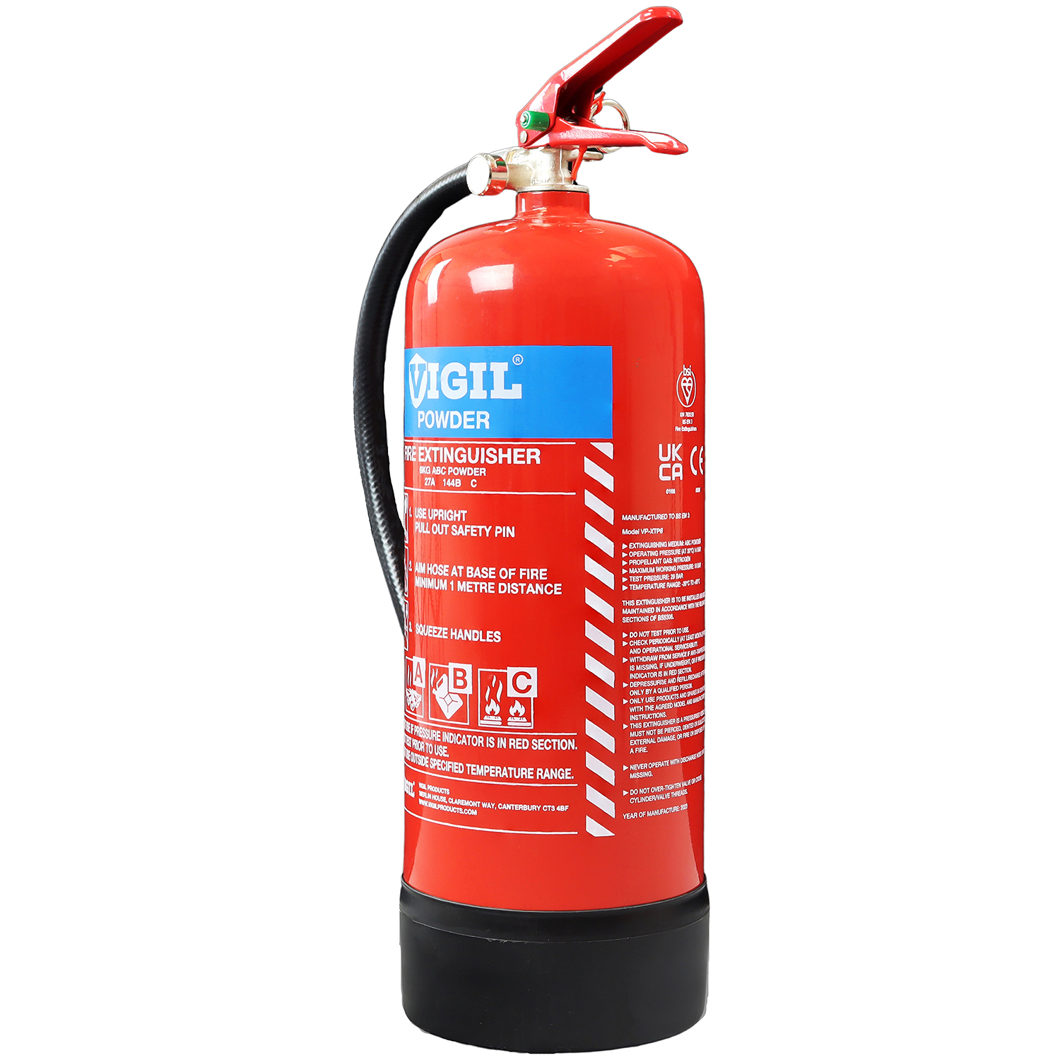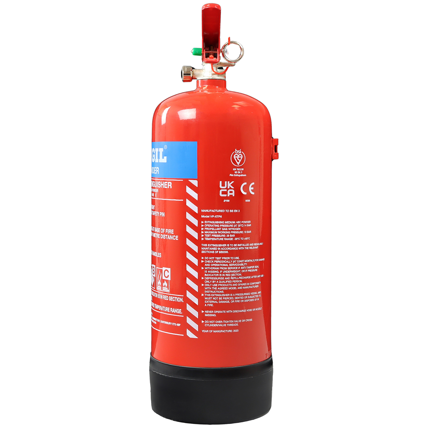 One of our more popular sizes, the 6kg ABC powder fire extinguisher is lightweight so its easy to use and will fight all types of fire except flammable metals. With a 27A 144B C fire rating, the ABC means multi-purpose and you need to be careful because some suppliers use BC powder to save money and BC powder will not fight Class A (wood, paper, material) fires.