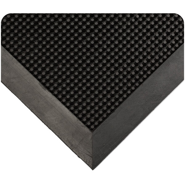 It measures 91 x 152cm (3’ x 5’) and is constructed from a durable grease proof natural black rubber formed into thousands of rubber scrapers. These work to create a deep collection area – the mat has a thickness of 13mm (1/2”) – that can effectively hold pounds of dirt between routine cleanings. Plus, its bevelled trim helps to ensure disabled access is not disrupted and combat accidental tripping. This heavy-duty mat can handle wet or dry environments and is a must-have maintenance option for indoor or outdoor entrance areas that experience a great deal of foot traffic daily and is easily cleaned by turning it upside down to shake the debris out or with a quick hose down. |